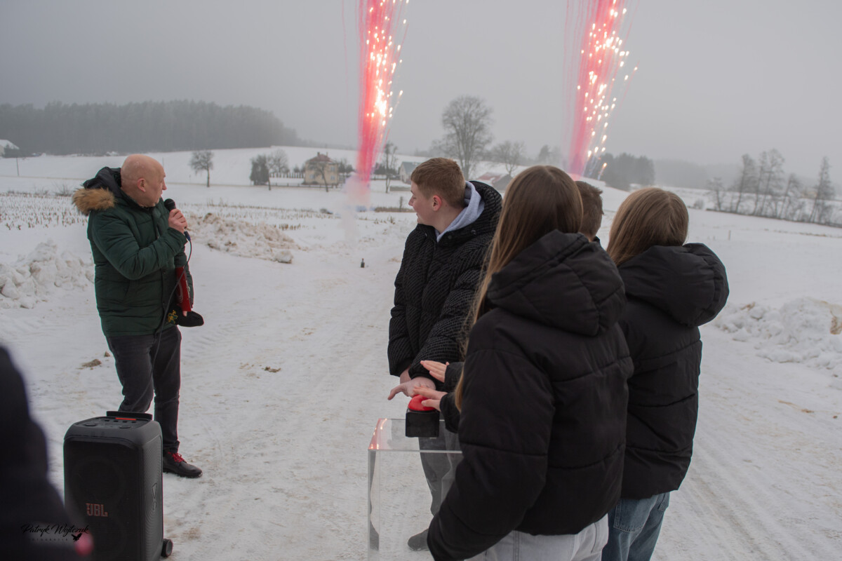 6 lutego 2026r. odbyło się uroczyste Otwarcie mostu na ul. Wesołej w Kuleszach Kościelnych oraz podsumowanie zrealizowanych inwestycji w 2025r. Podczas uroczystości oficjalnego otwarcia mostu w Kuleszach Kościelnych wójt gminy podkreślił znaczenie wszystkich zrealizowanych w ostatnim czasie inwestycji. Zaznaczył, że zakończenie tych inwestycji jest efektem konsekwentnie realizowanej polityki rozwoju gminy, ukierunkowanej na poprawę infrastruktury technicznej, bezpieczeństwa oraz komfortu życia mieszkańców. Podczas uroczystości głos zabrali również zaproszeni goście. Jacek Brzozowski Wojewoda Podlaski  oraz Bogdan Zieliński  Starosta Powiatu Wysokomazowieckiego w swoich wystąpieniach podkreślili znaczenie zrealizowanej inwestycji dla poprawy bezpieczeństwa oraz rozwoju lokalnej infrastruktury drogowej. Zwrócili uwagę na rolę współpracy pomiędzy samorządem gminnym, powiatowym i administracją rządową w skutecznej realizacji tego typu przedsięwzięć. Podczas uroczystego otwarcia nowo wybudowanego mostu Ksiądz Proboszcz Krzysztof Konopka dokonał jego poświęcenia. W dalszej części uroczystości dokonano symbolicznego otwarcia inwestycji z udziałem młodzieży. Odstąpiono od tradycyjnej formy przecięcia wstęgi, zastępując ją naciśnięciem przygotowanego do tego celu przycisku. W momencie jego użycia w powietrze wystrzeliły kolorowe dymy, podkreślając oficjalny charakter oddania inwestycji do użytkowania.